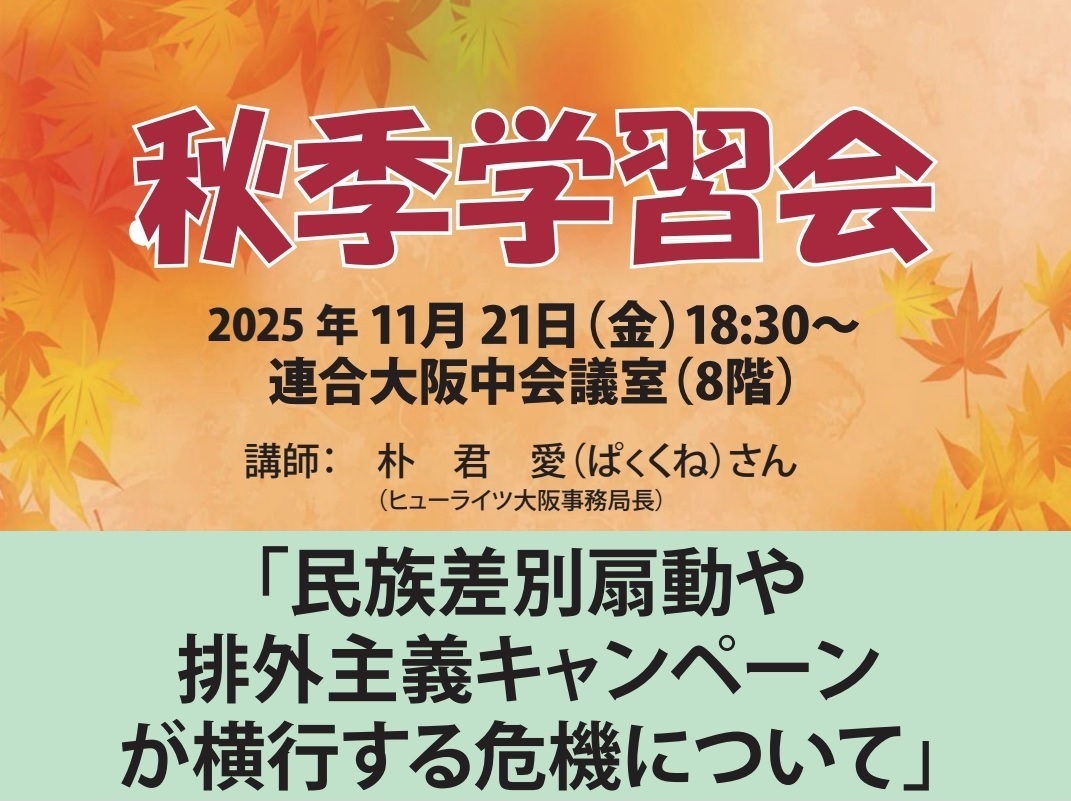 今回の学習会のテーマは、『民族差別扇動や排外主義キャンペーンが横行する危機について』です。