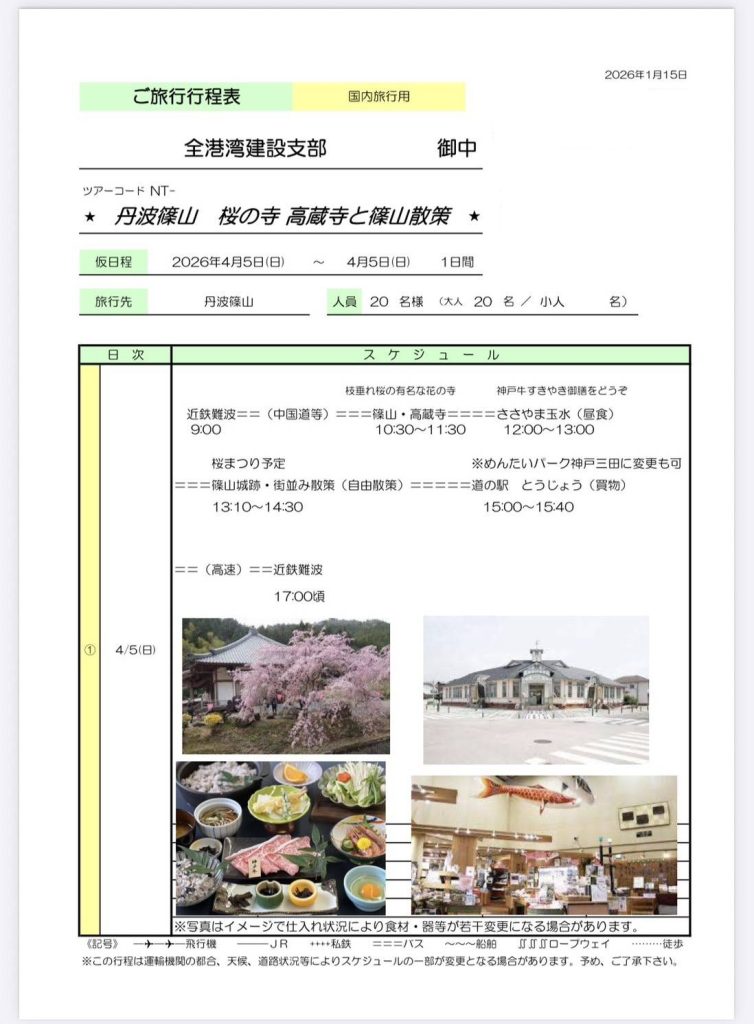 カテゴリー 全投稿 太平分会 建設支部 西成分会 2026 お花見バスツアー案内 投稿者 作成者: 投稿日 2026年3月7日 2026 お花見バスツアー案内 へのコメントはまだありません 《4月5日🌸お花見について》午前9時に難波を出発する予定ですが、8時40分頃にバスの配車をいたします。全員が揃った時点で出発いたしますので、何卒よろしくお願い申し上げます。 ← 再雇用有期労働者は前進するぞ → 太平ビルサービス分会 2026年度春闘団体交渉のお知らせ コメントを残す コメントをキャンセルメールアドレスが公開されることはありません。 * が付いている欄は必須項目ですコメント 名前 * メール * サイト 次回のコメントで使用するためブラウザーに自分の名前、メールアドレス、サイトを保存する。